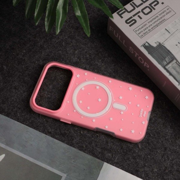 Su diseño con estrellas en relieve le aporta ese toque mágico y delicado, mientras que el aro MagSafe te permite usar cargadores y accesorios imantados sin problemas.